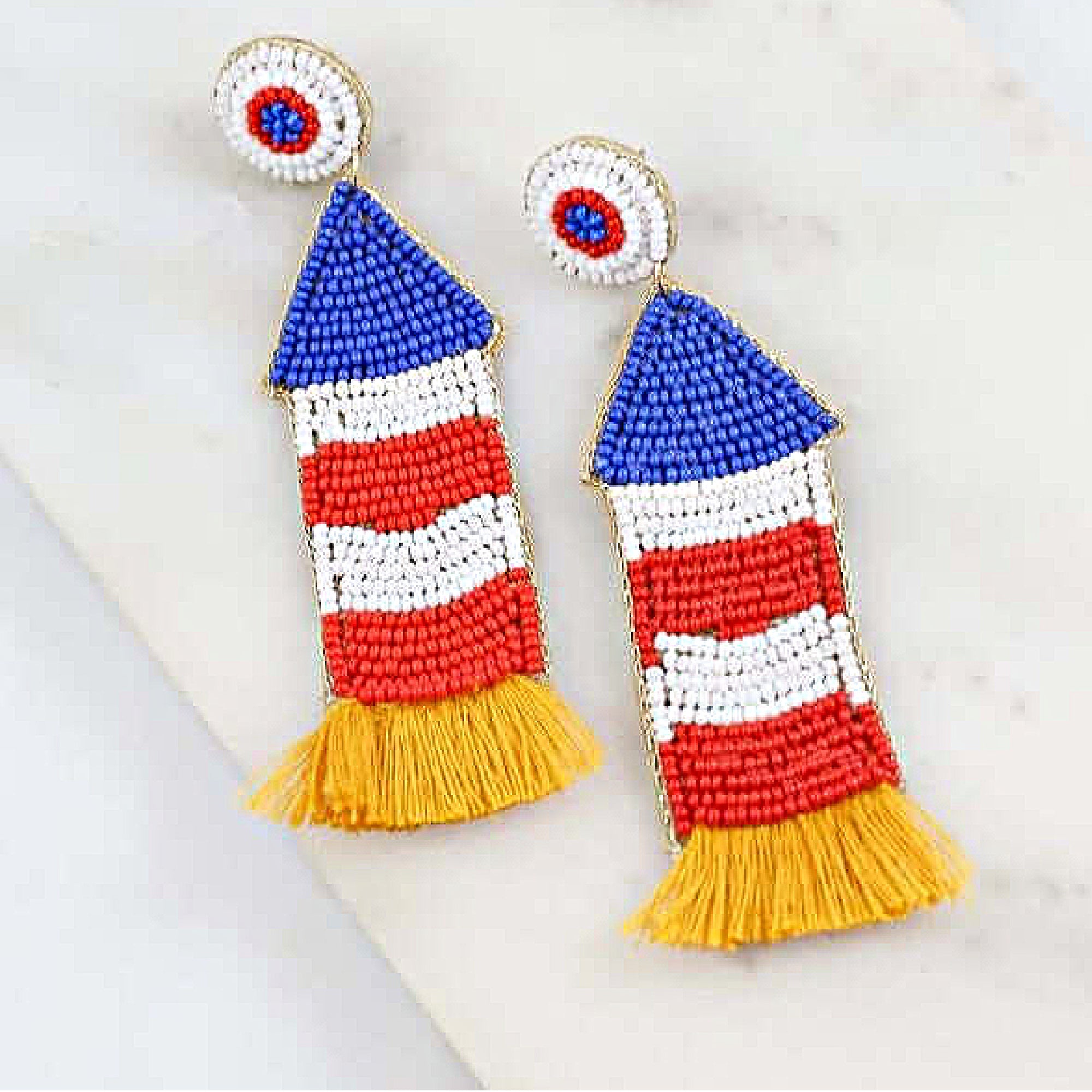 Patriotic 4th of July Firecracker Rocket Beaded Earrings