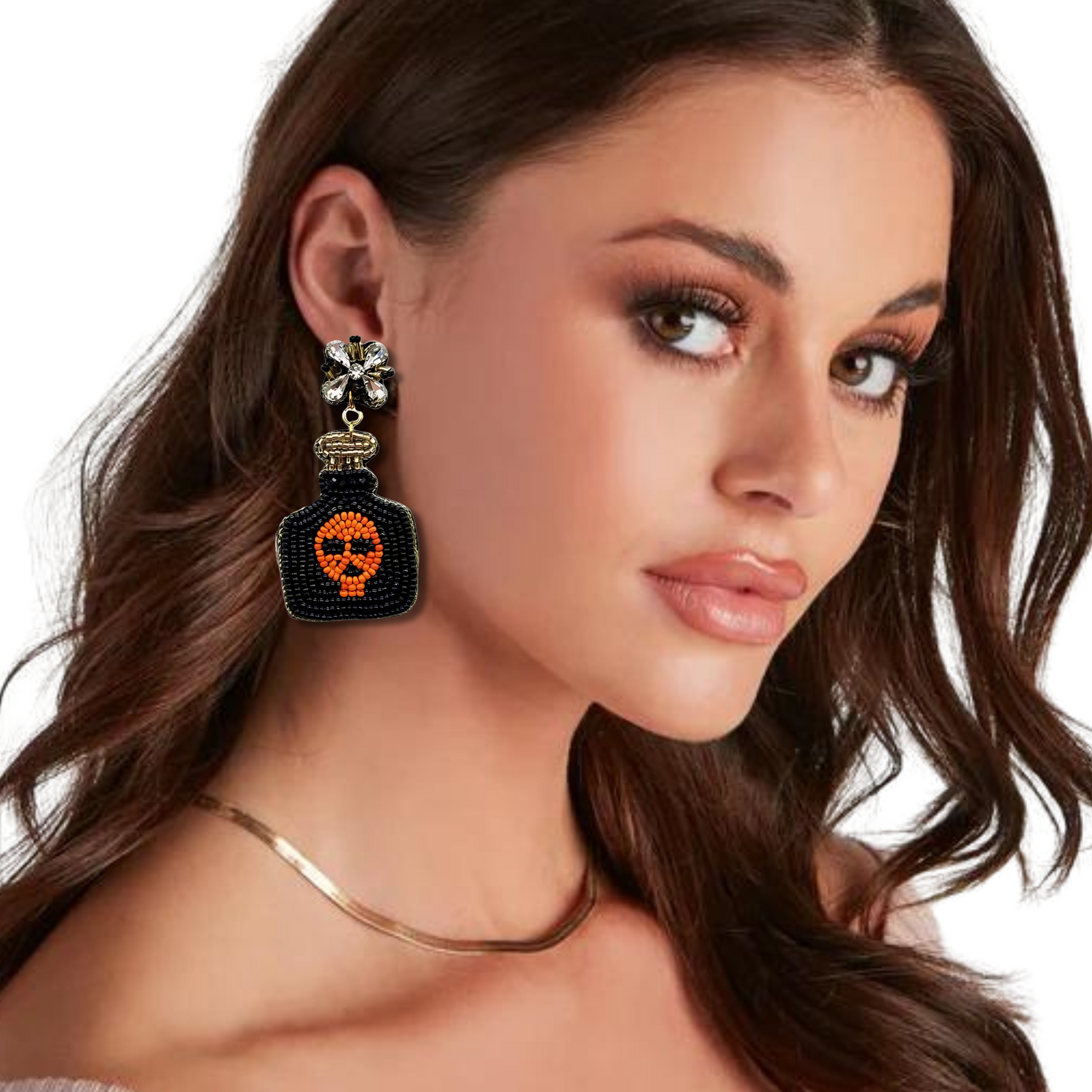 Pick Your Poison Seed Beaded Halloween Goth Earrings