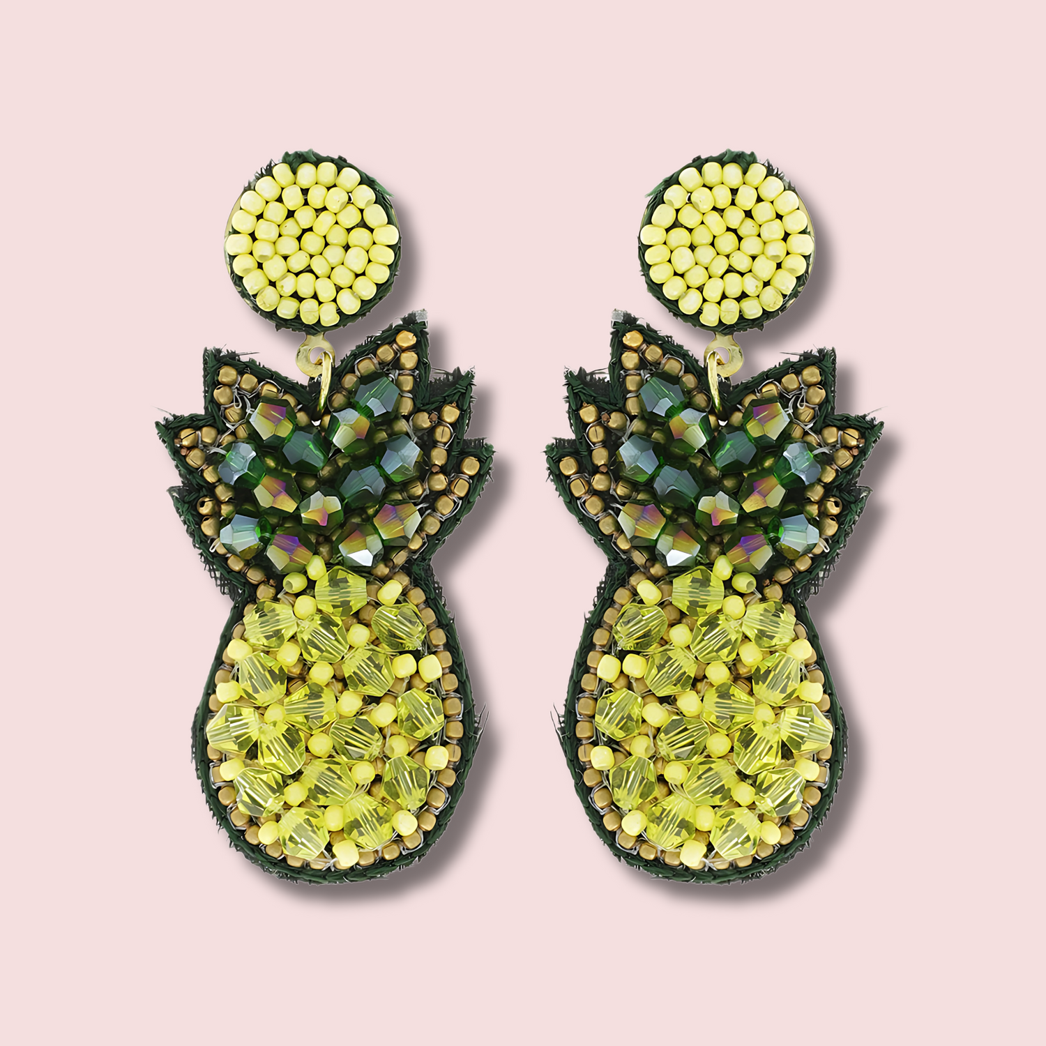 Pineapple Fruit Glass Beaded Tropical Earrings