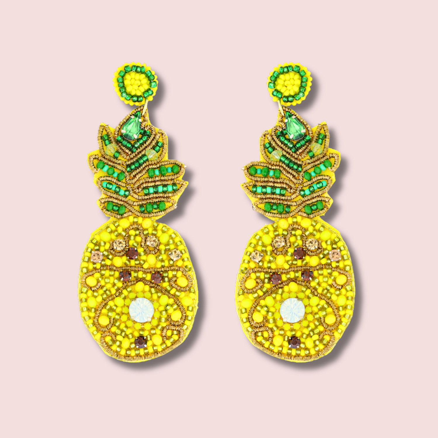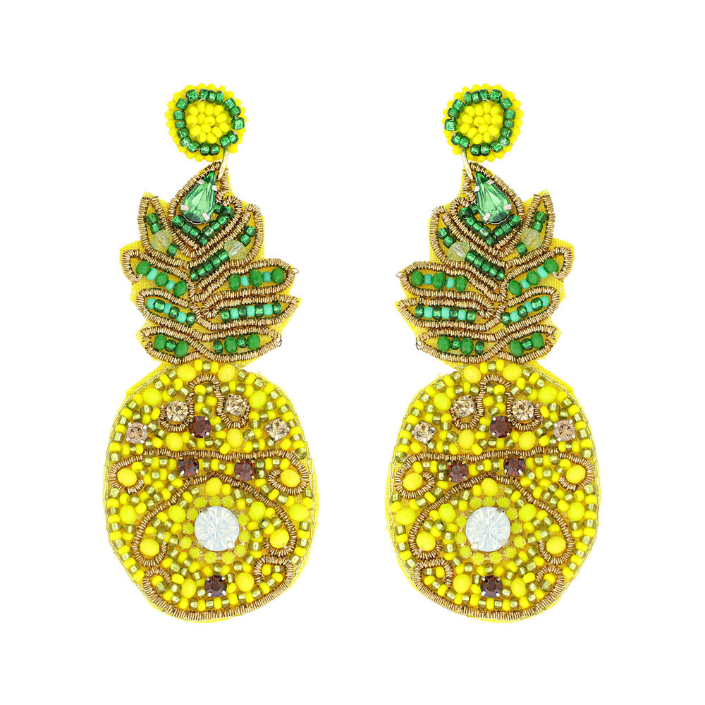 Pineapple Sparkle Seed Beaded Tropical Earrings