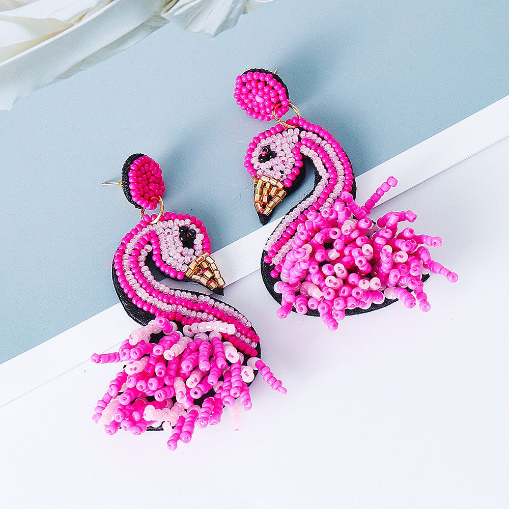 Pink Flamingo Tropical Bird Beaded Earrings