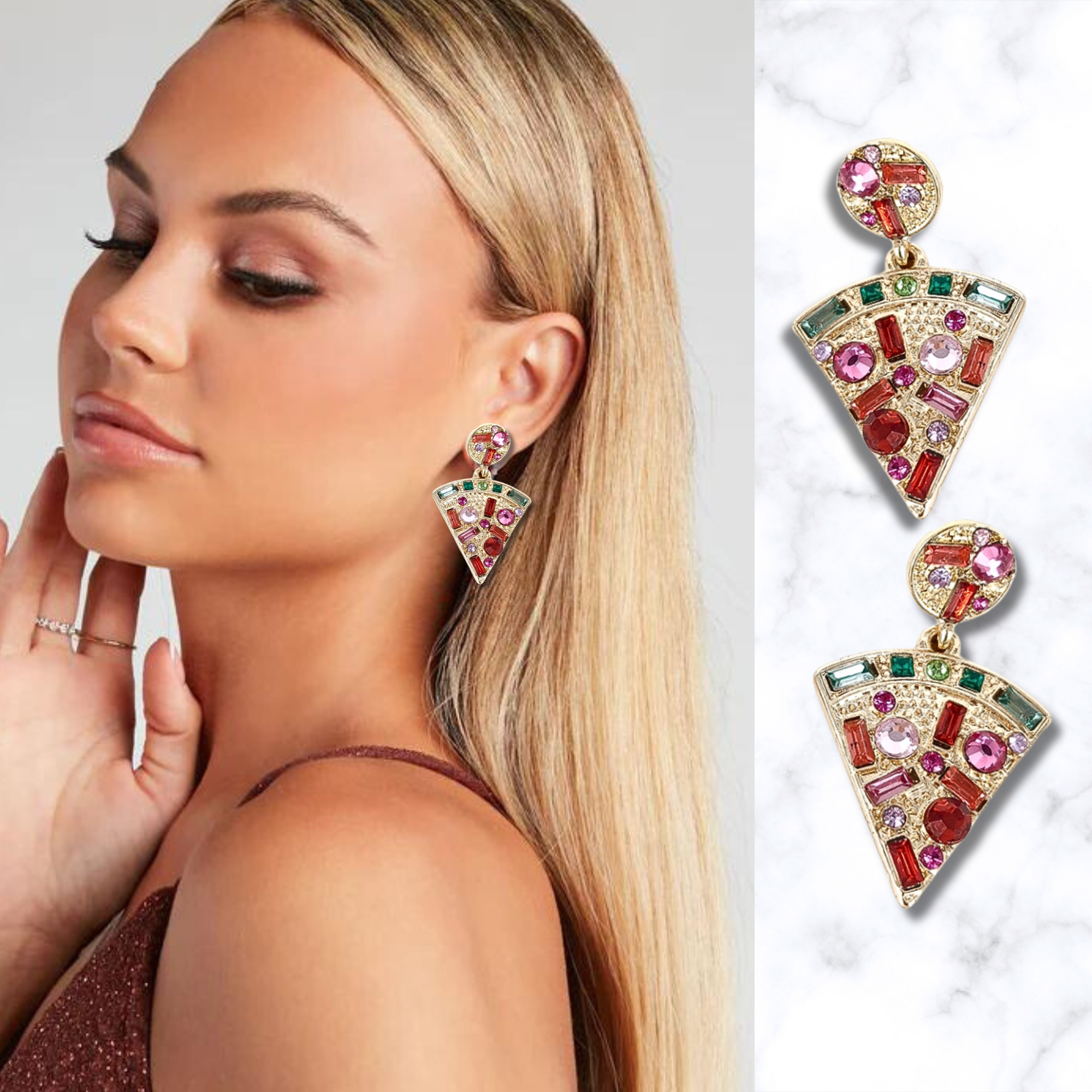 Pizza Slice Crystal Gem Rhinestone Earrings