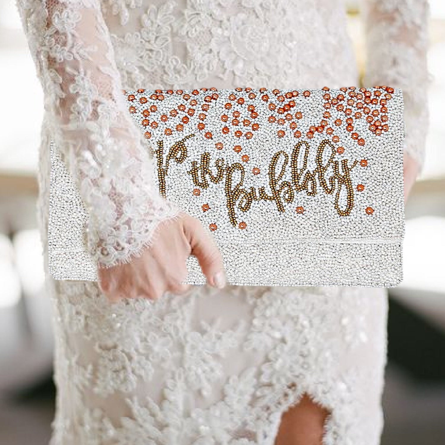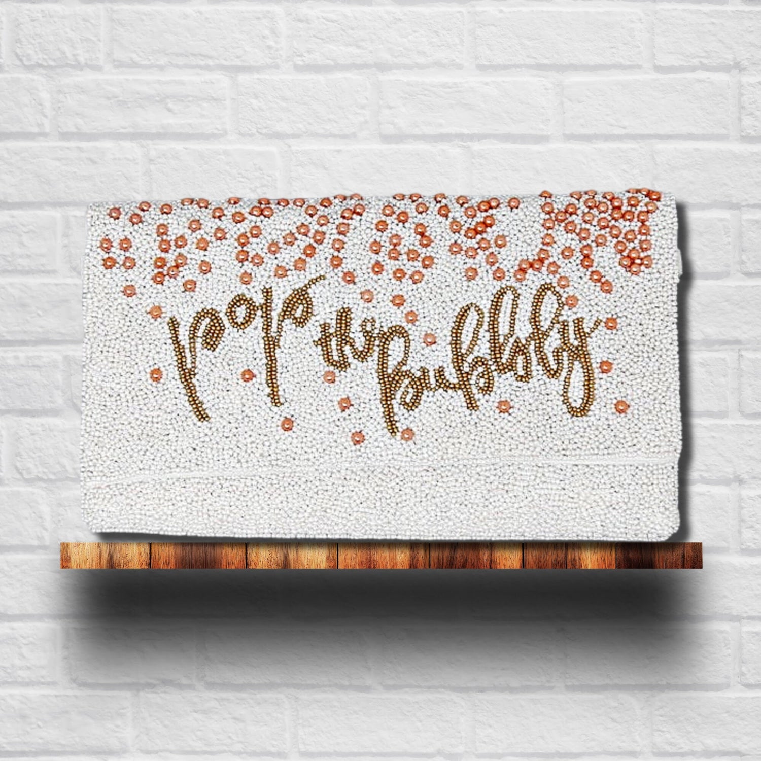 Add some sparkle and some celebration to your wardrobe with our Pop The Bubbly Clutch!