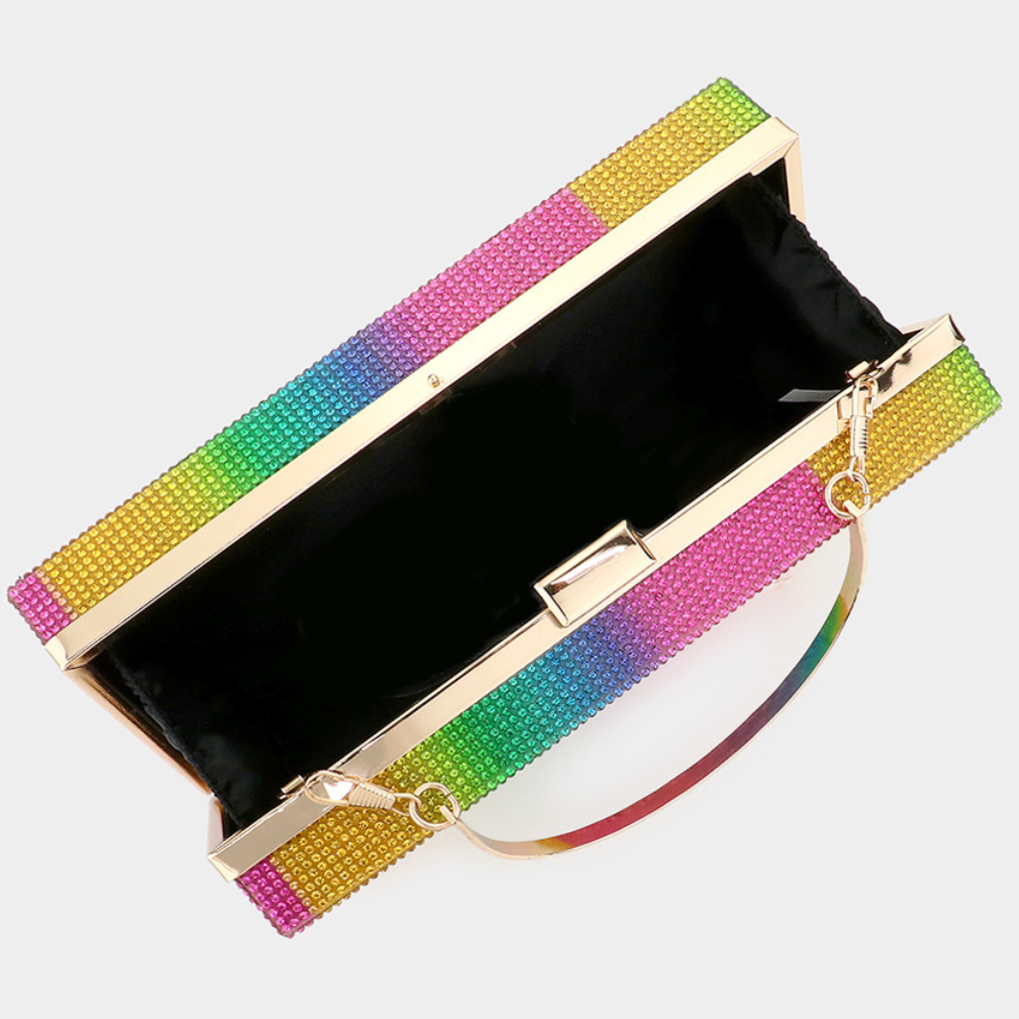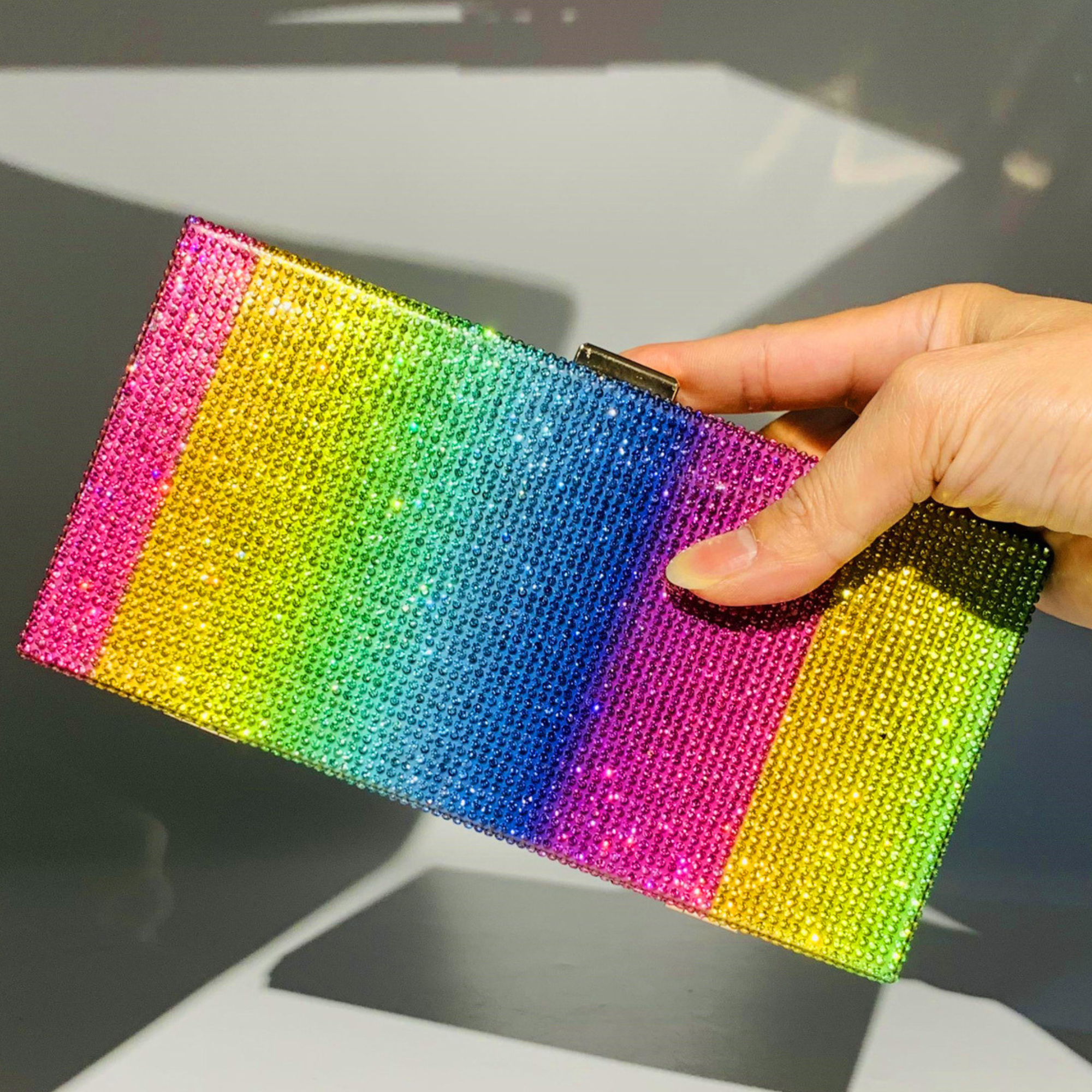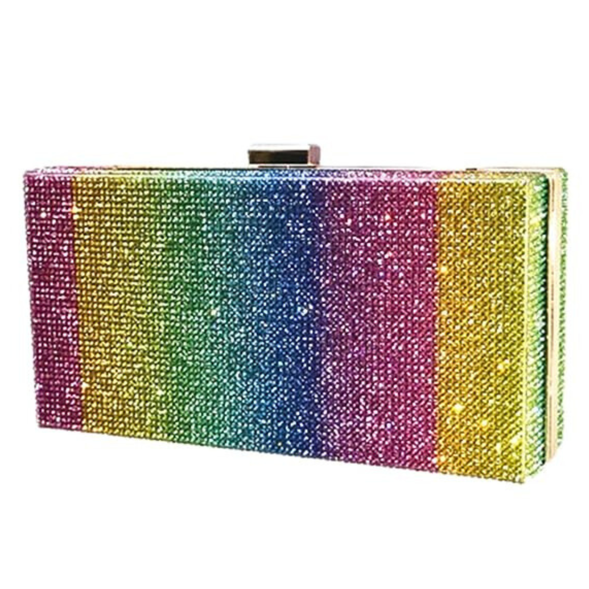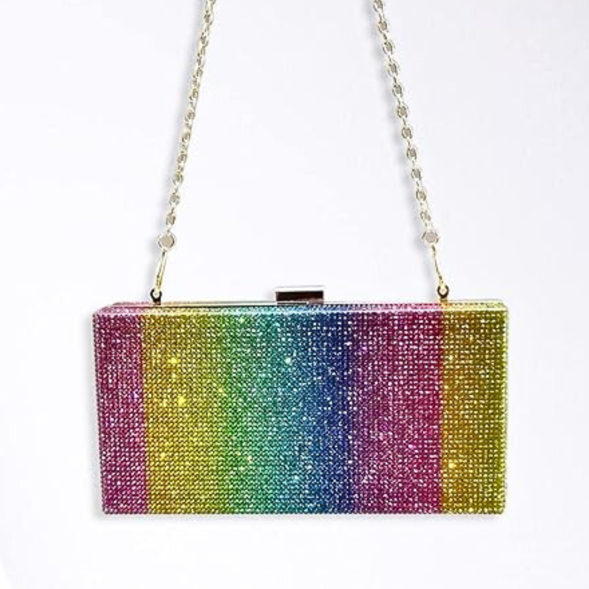 Rainbow Bling Crossbody Chain Clutch Handbag