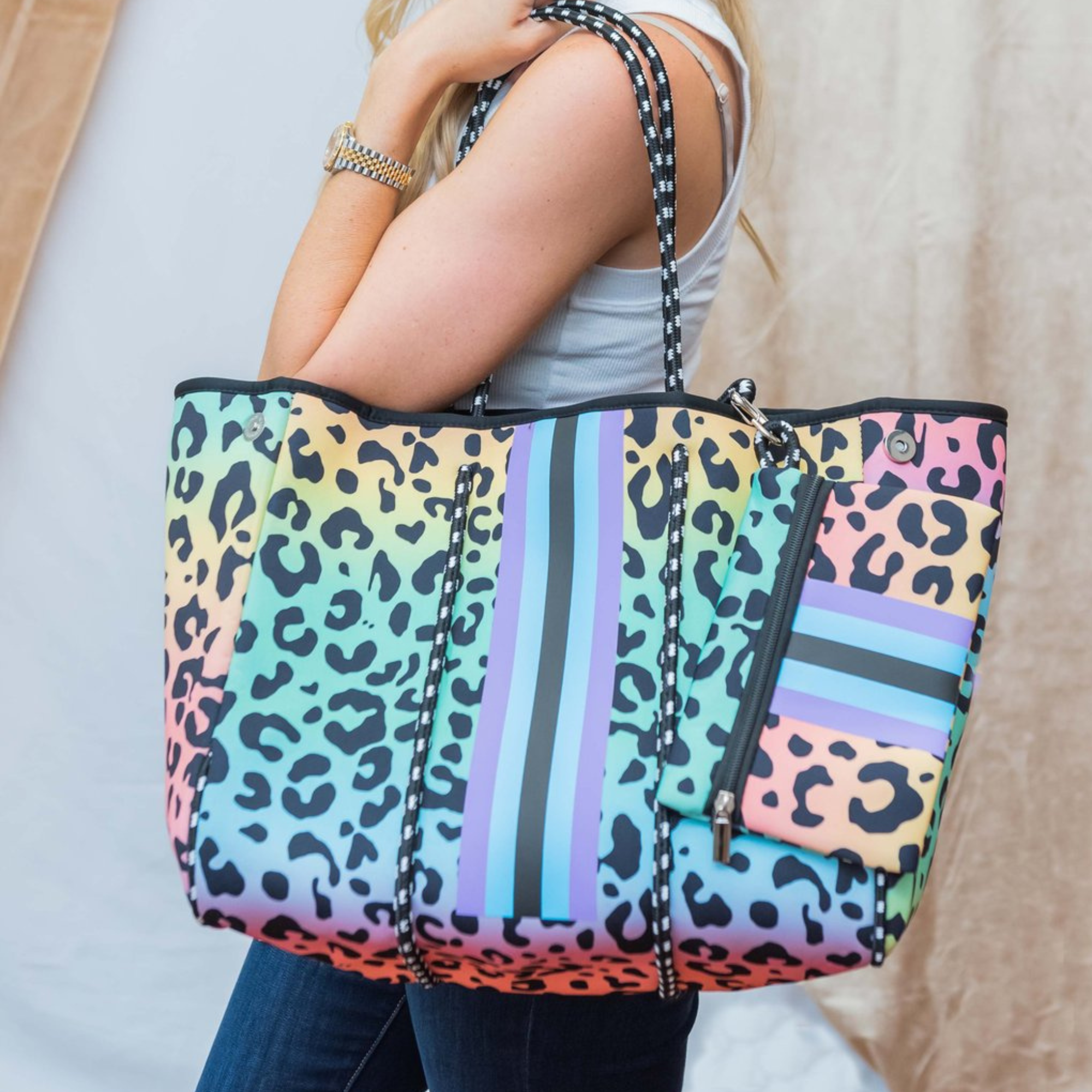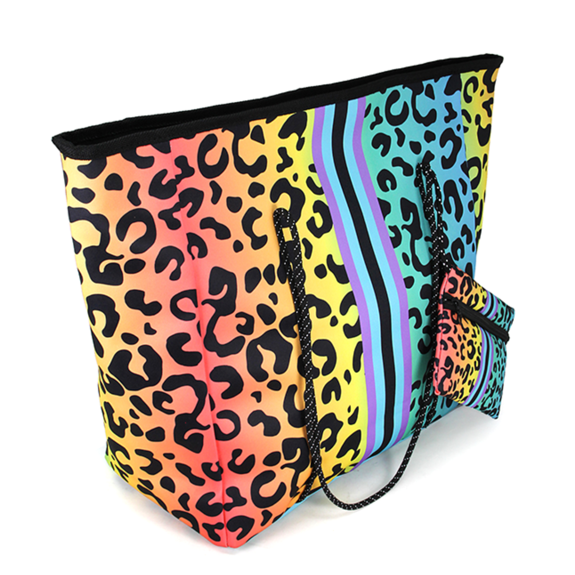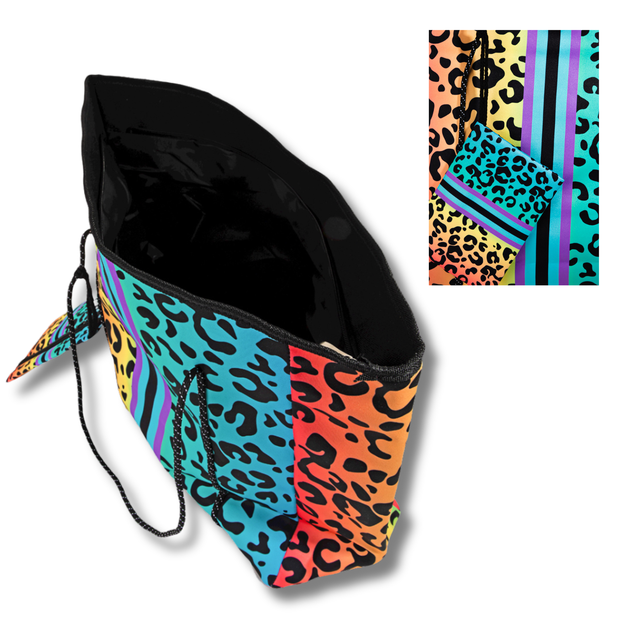 Rainbow Leopard Oversized Tote Bag with Storage Pouch