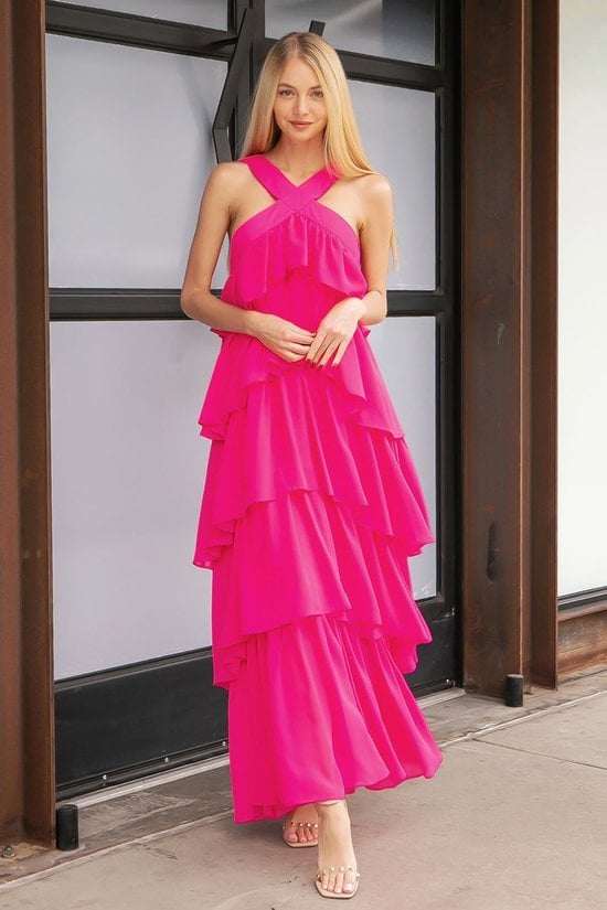 Ready To Ruffle Maxi Dress – Hot Pink Statement Gown