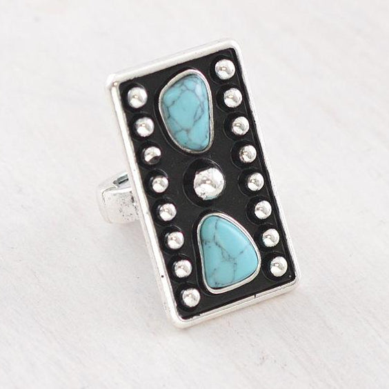 #westernjewelry #turquoisering #pinkstonering #rectanglering #bohowestern #statementring #stretchring #cowgirljewelry #fashionjewelry #silverplated #womensjewelry #giftforher #madeinusa #rhodeislandmade #boldaccessories #turquoisestyle #westernstyle #countrycharm #everydayglam