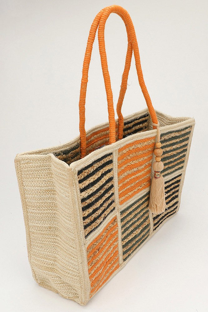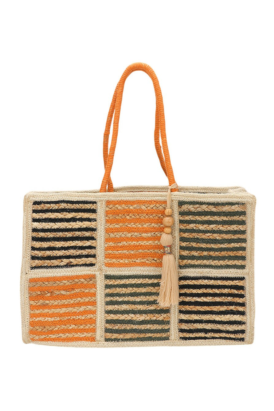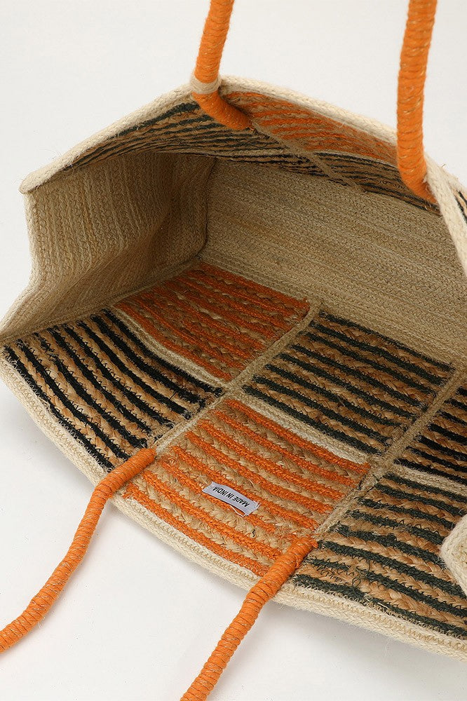 Boho Marketplace Woven Tote Bag Stylish and spacious, this woven tote bag features an intricate embroidered pattern and sturdy circular handles. Perfect for beach days, shopping, or casual outings, it blends fashion and function for an effortlessly chic look. Lightweight and easy to carry all day • Size : 18.5" X 12" X