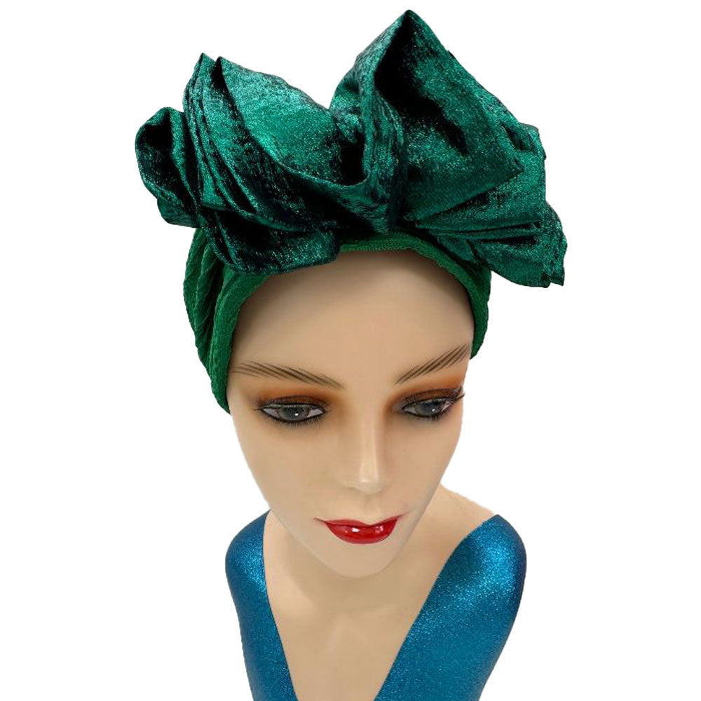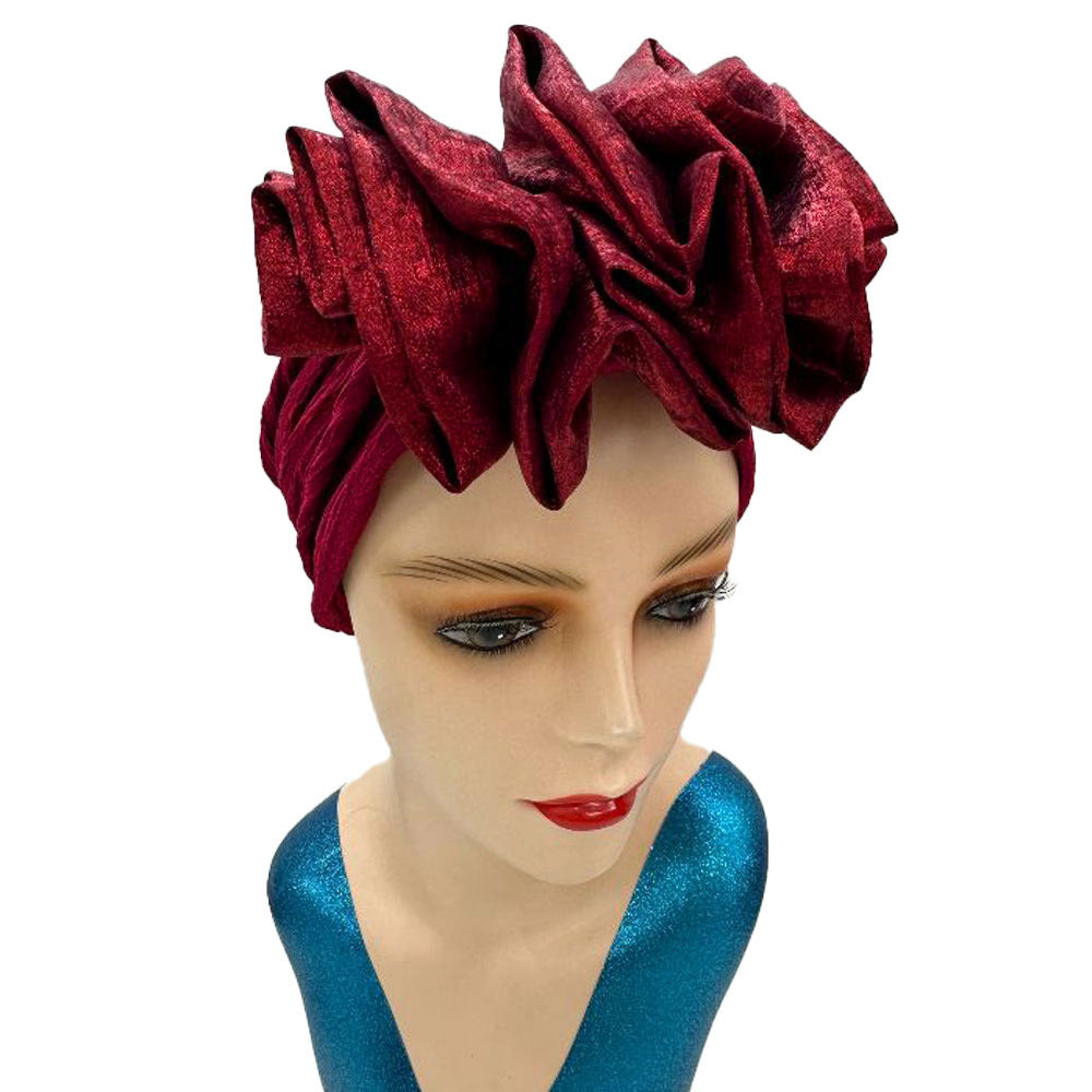 This elegant ruffled statement head wrap adds dramatic flair and sophistication to any outfit. Designed with voluminous layered detailing, it offers a bold, sculpted silhouette perfect for special occasions, cultural events, or elevating everyday fashion with timeless grace. Designed by JuJu Janie, an indie jewelry/acc