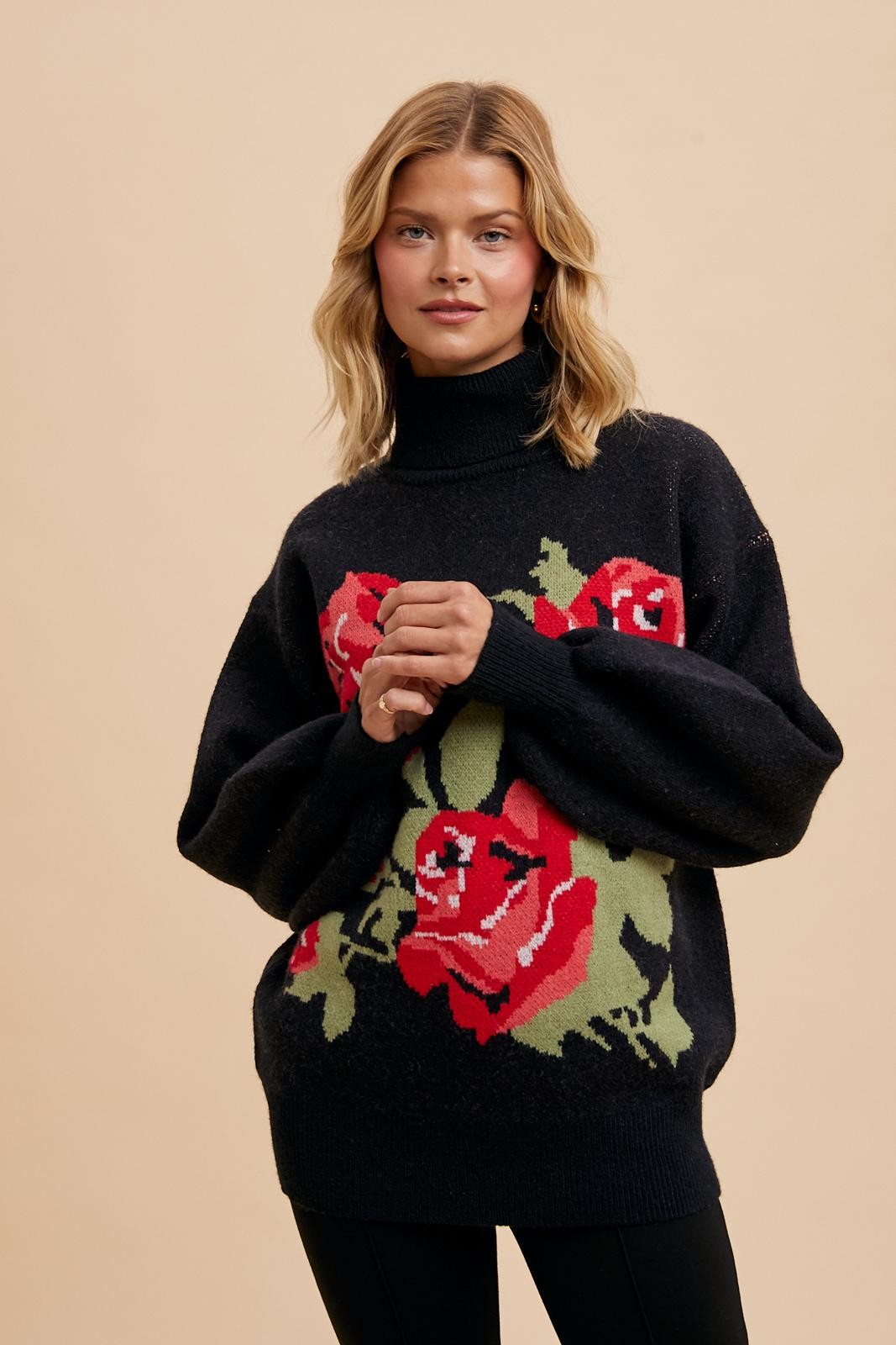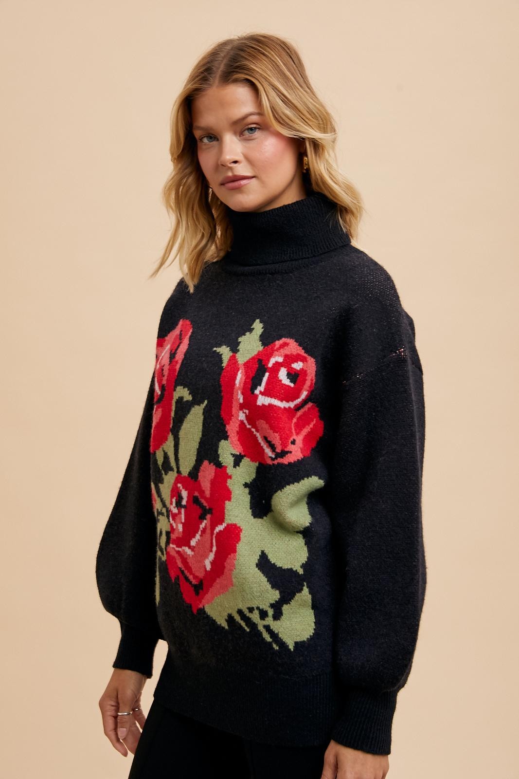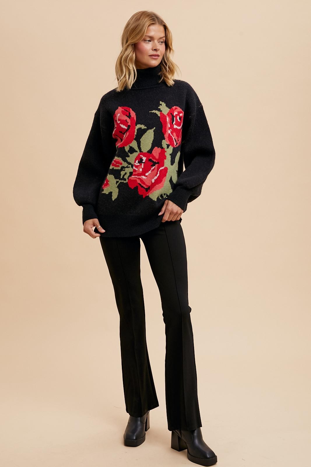 Rose Bloom Knit Turtleneck Sweater