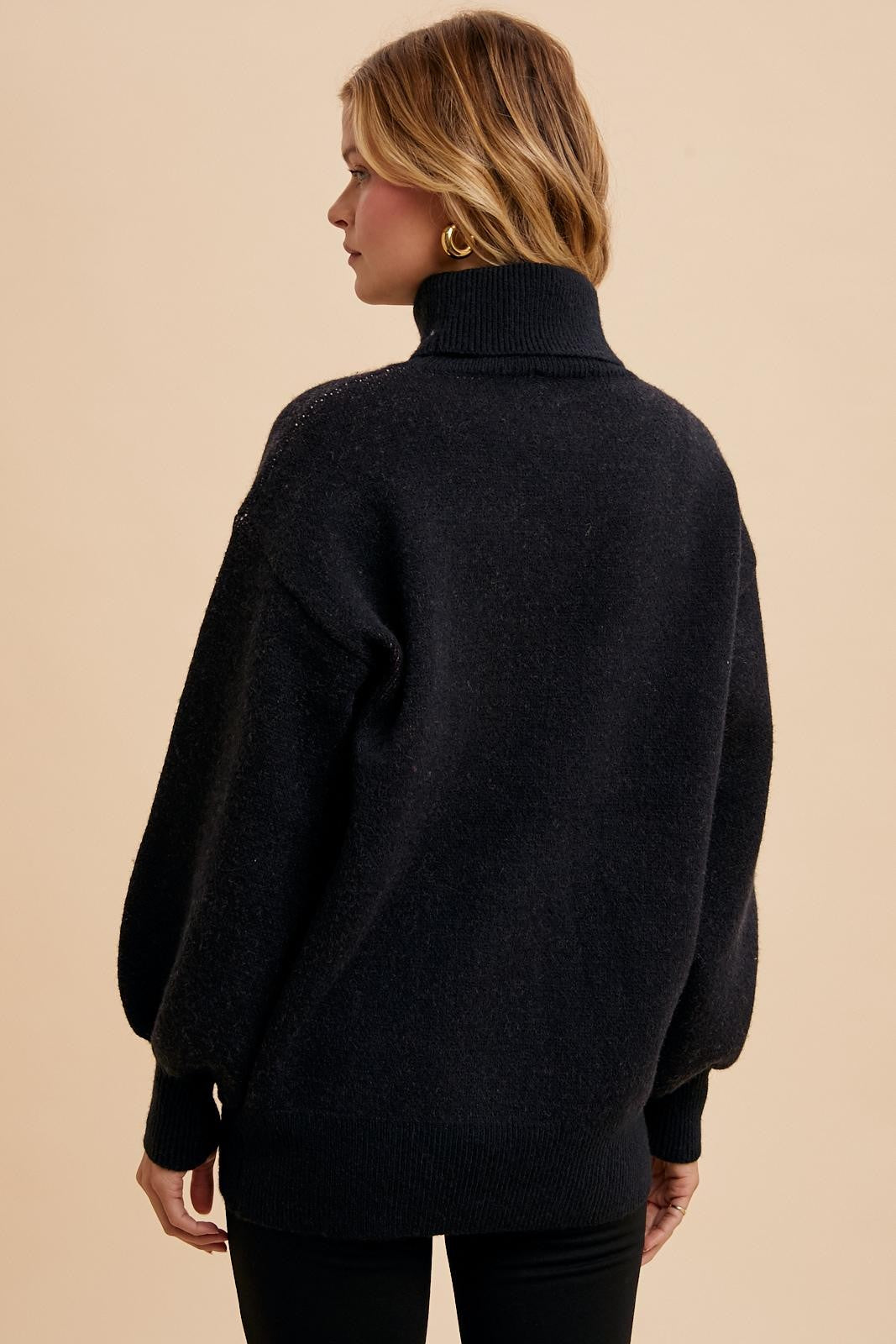 - Fit: Relaxed, comfortable turtleneck silhouette