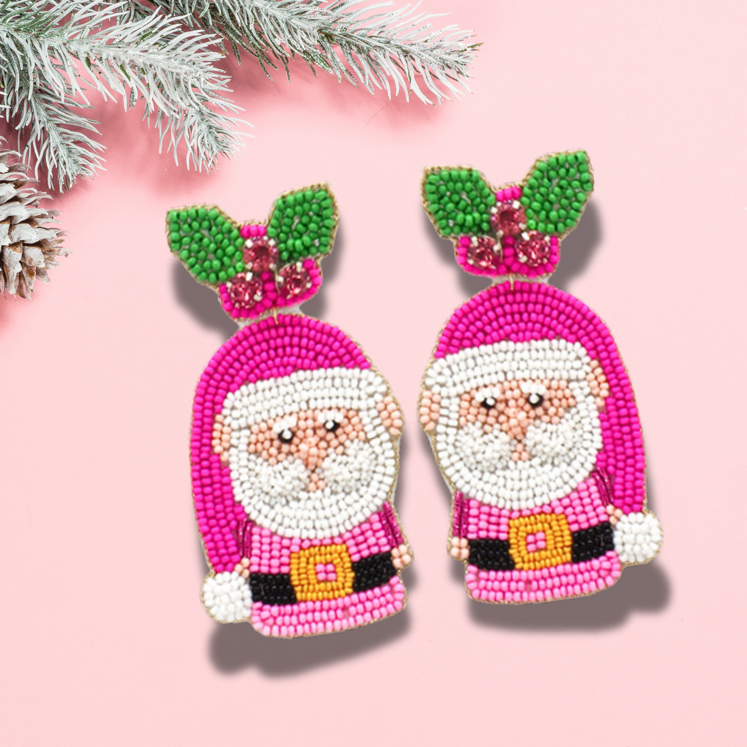 Santa Under The Mistletoe Crystal Beaded Earrings