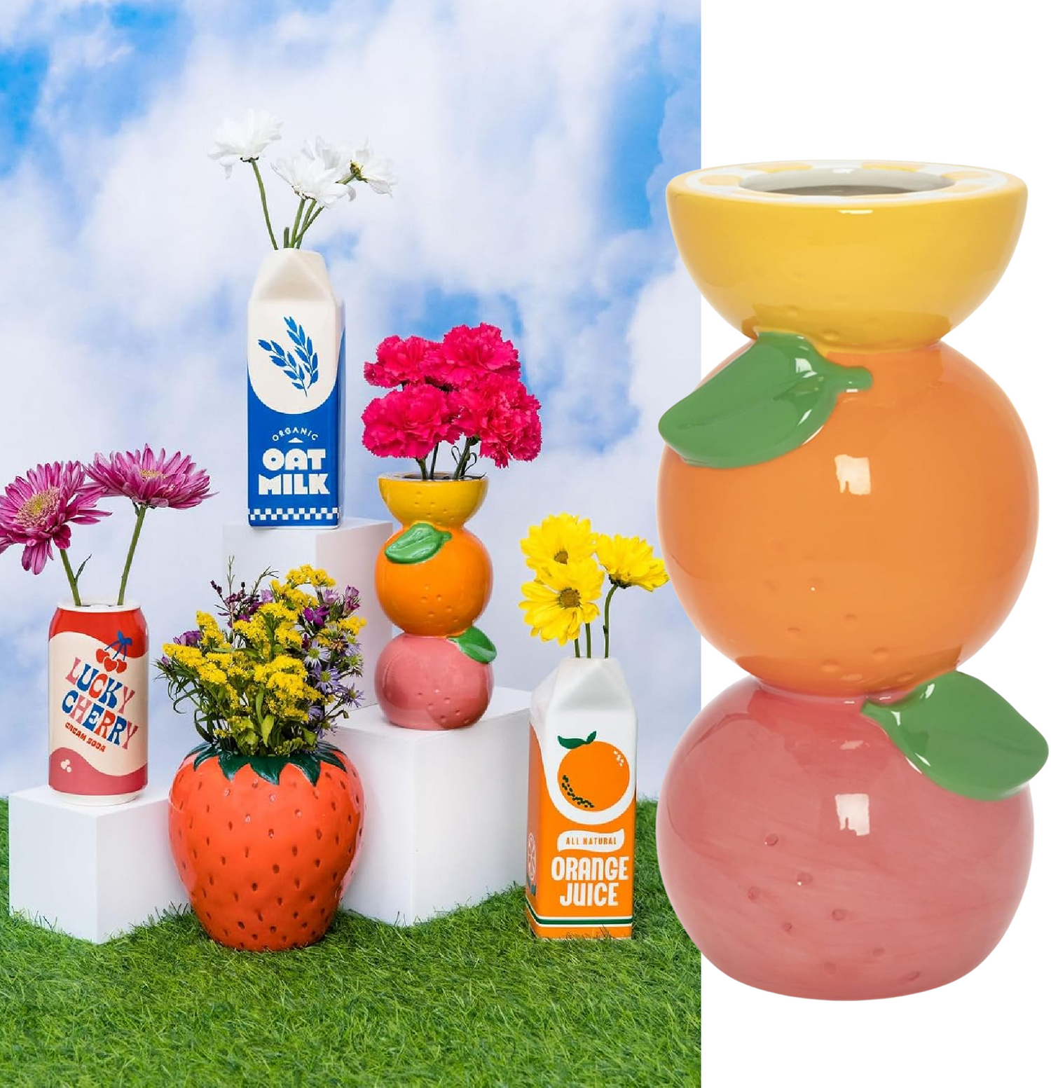 Get your daily dose of vitamin C and style this fruity find in your kitchen, bathroom, bedroom, dorm room, office, or home library; this novelty vase will add a pop of color to any coffee table, bookshelf, or side table you place it on.