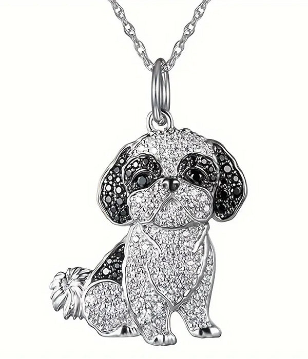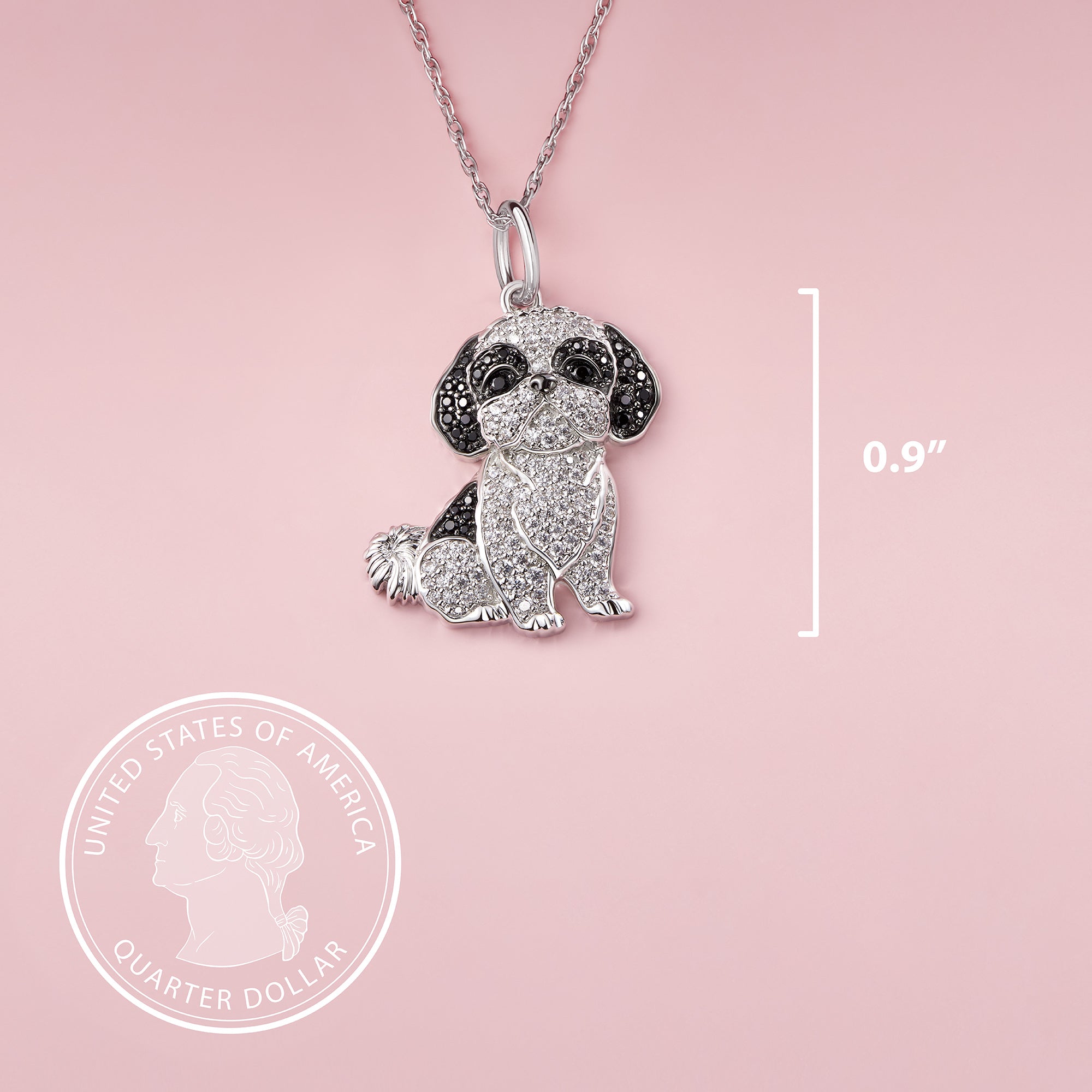 Shih Tzu Dog Breed Rhodium Sterling Silver CZ Necklace