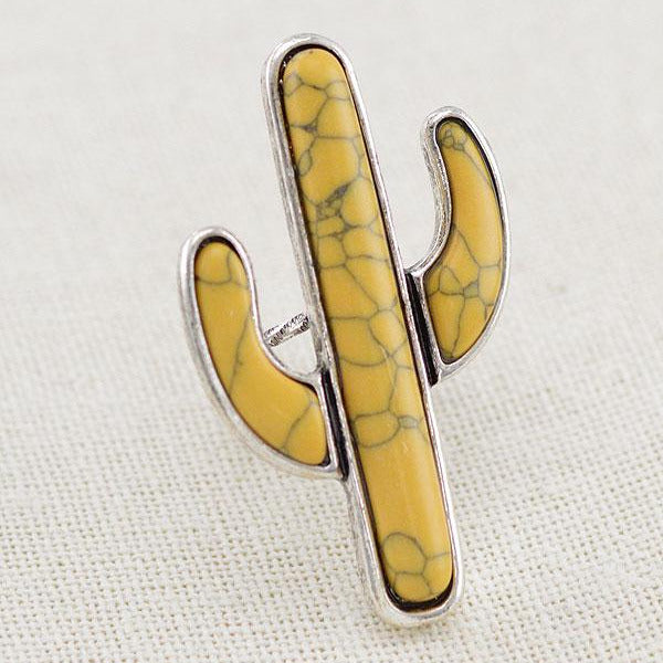 Channel desert magic with the Sierra Natural Stone Cactus Ring. A bold silver cactus motif anchors this western statement ring, set with your choice of striking natural stones. Finished with an adjustable cuff back for easy, comfy wear, it brings rugged charm and boho shine to every outfit.