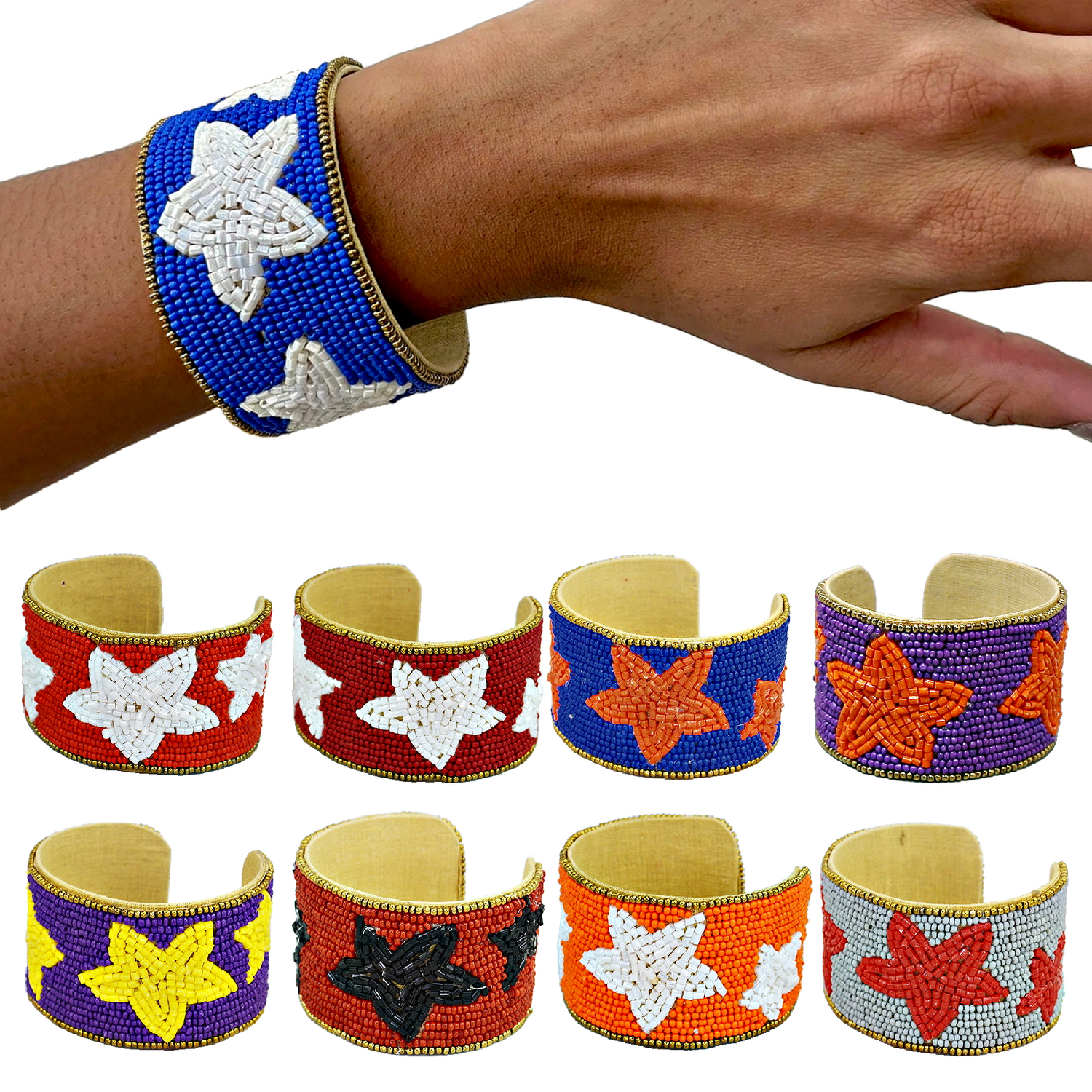 STAR Beaded Football College Pro Fan Sports Team Colors Cuff Bracelet