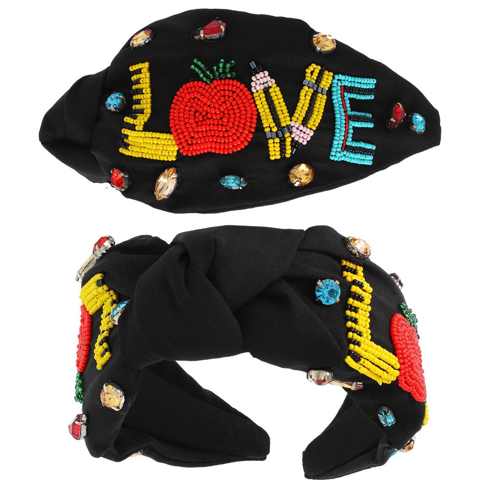 TEACHER LOVE Black Beaded Crystal Top Knot Headband