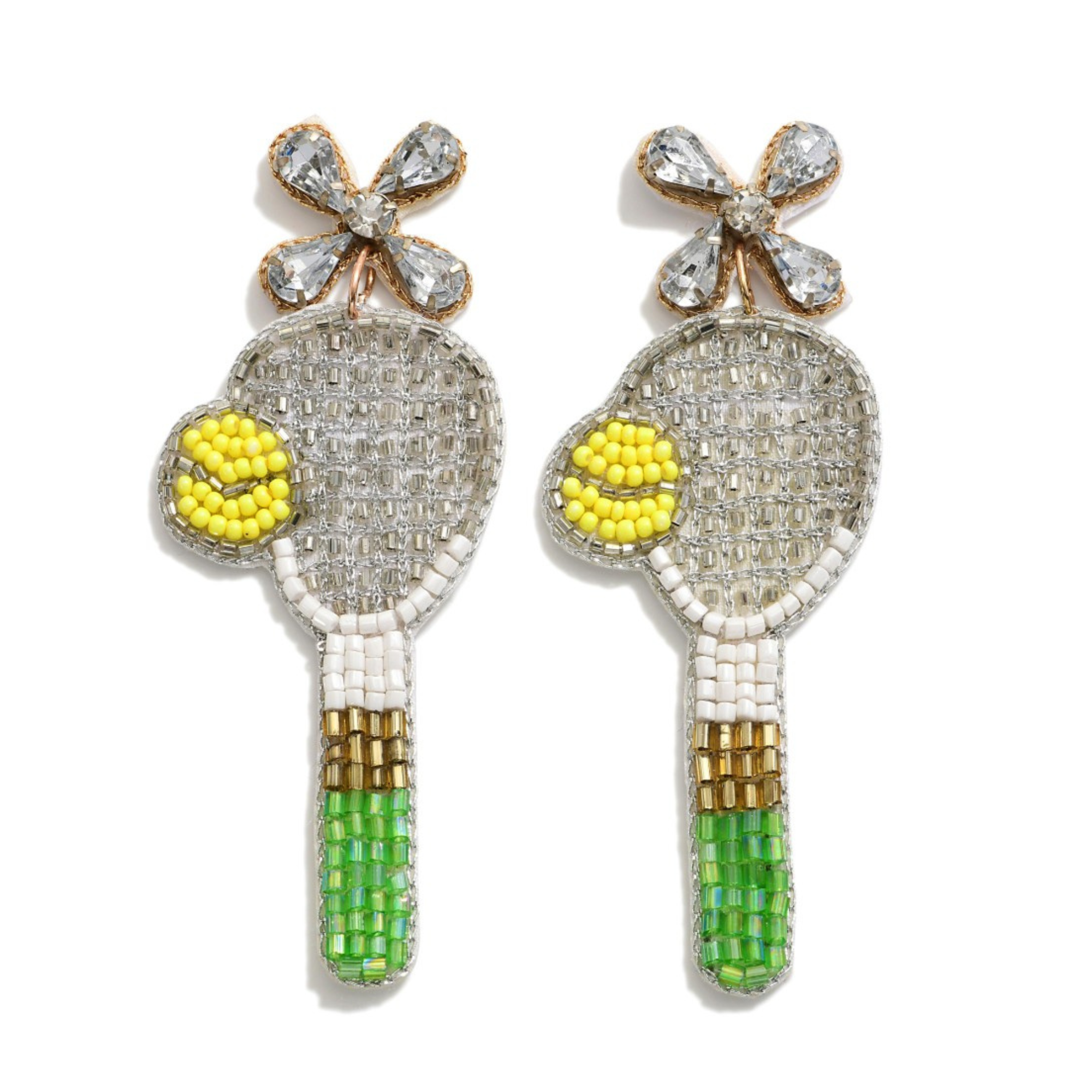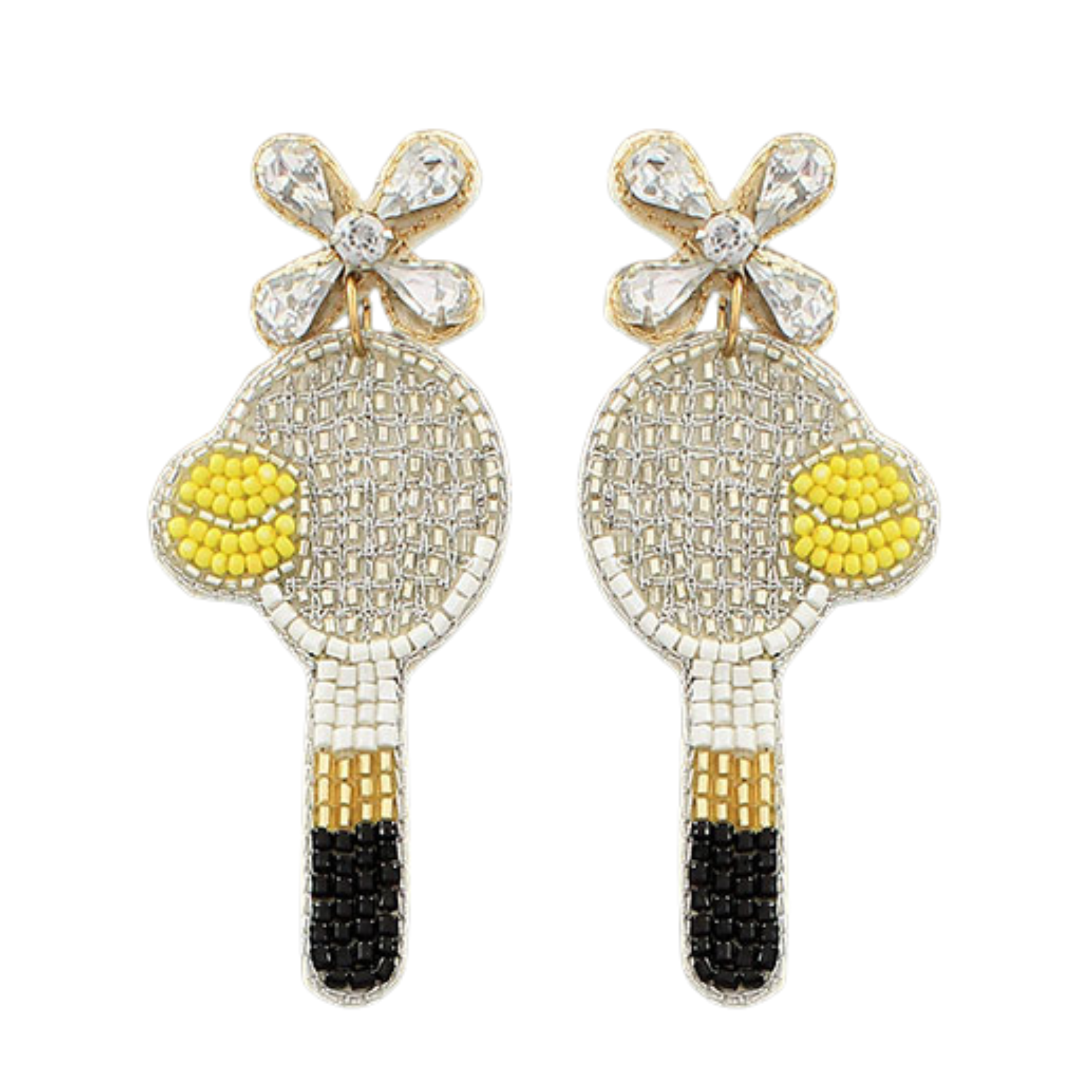 TENNIS Theme Silver Black Beaded Crystal Racket Earrings