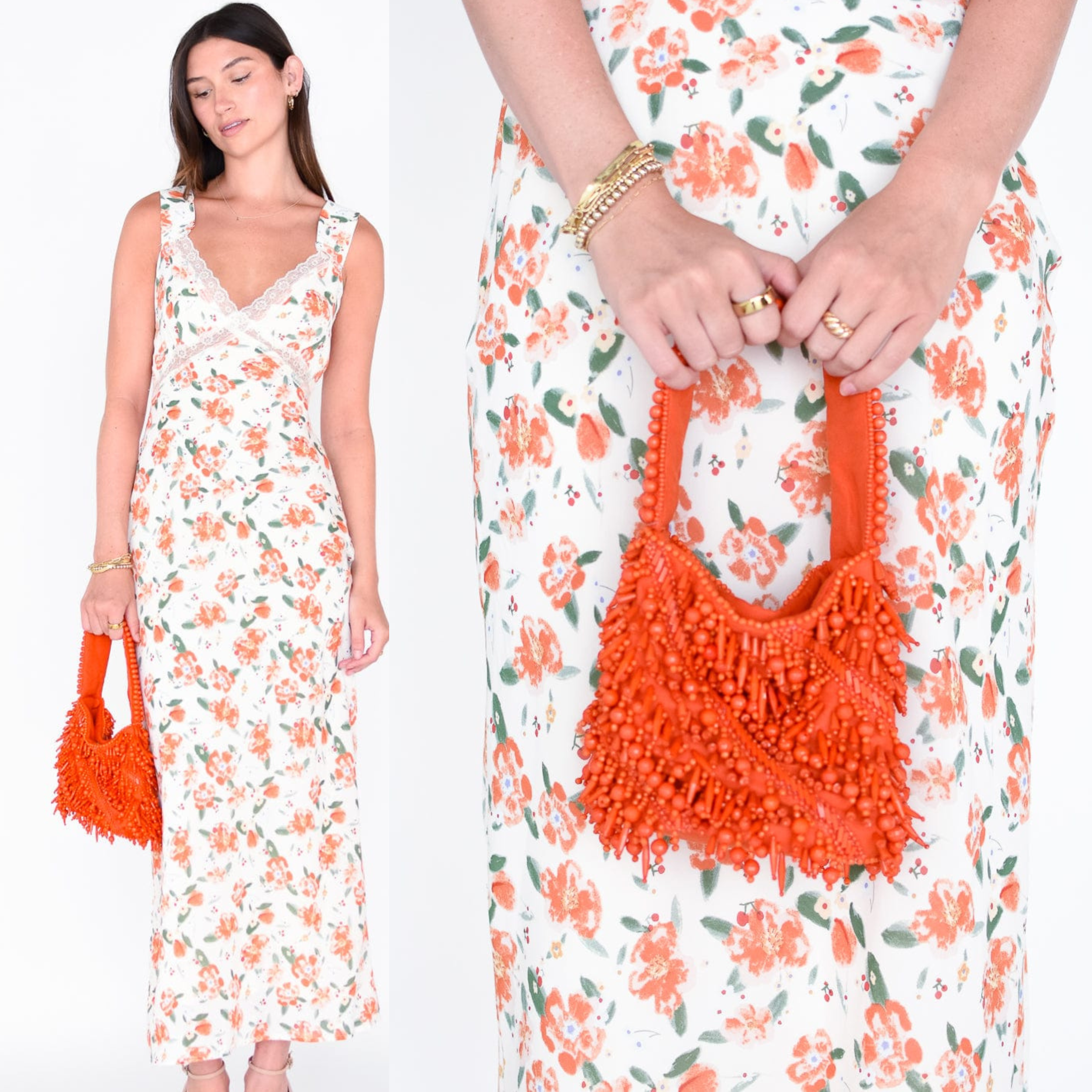The Averlee Artisan Beaded Mini Bucket Bag in Orange