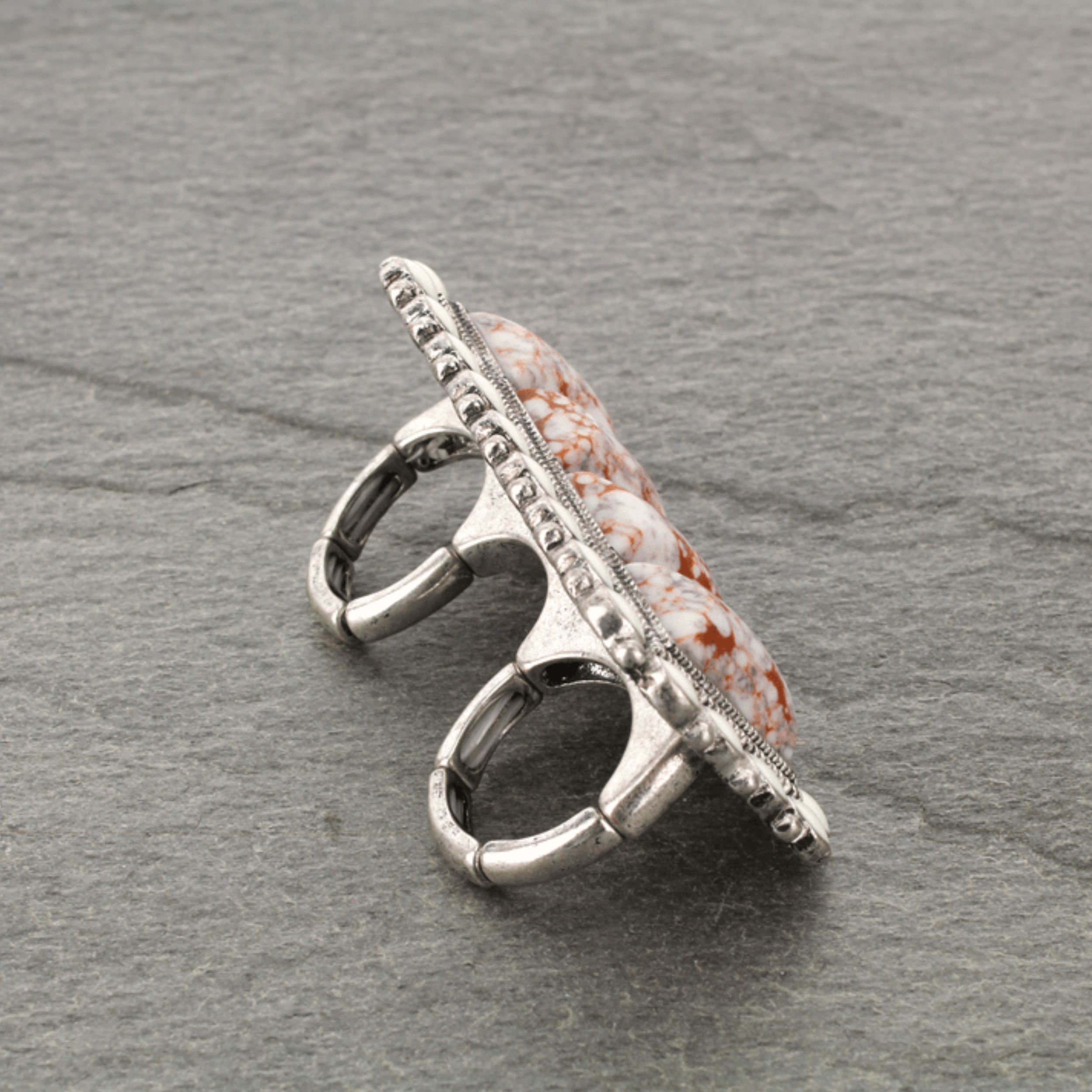 Western Style Natural Stone Double Finger Stretch Ring