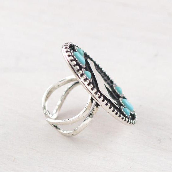 #westernjewelry #turquoisering #cowring #silverplated #statementring #bohowestern #adjustablering #fashionjewelry #womensjewelry #giftforher #madeinusa #rhodeislandmade #everydayglam #cowgirlstyle #southwesternjewelry #rusticstyle #boldaccessories